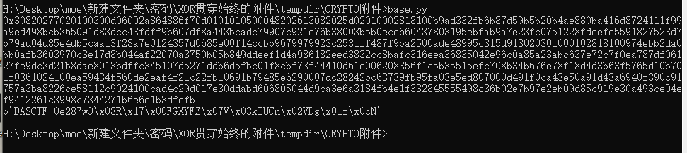 print('q= 0x'+pq[1])常规rsa解码,但解码后发现flag后半部分是乱码。