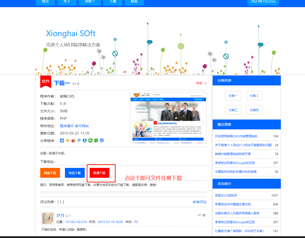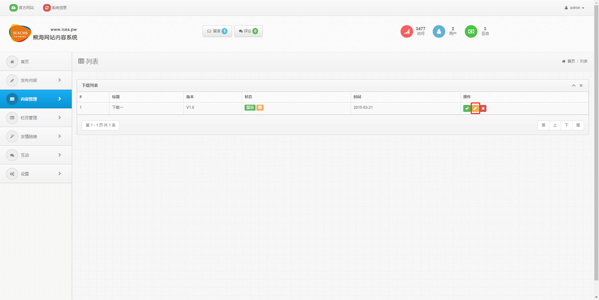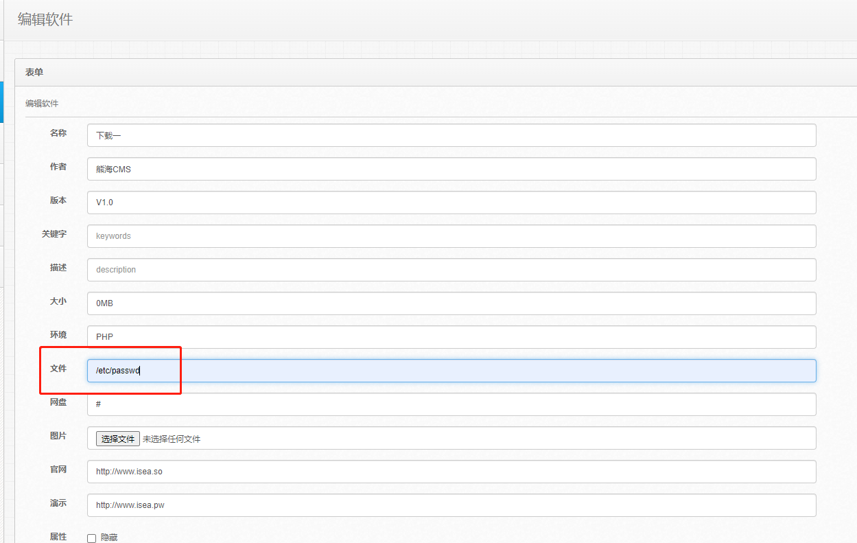 admin:123456登录进后台,选择内容管理--下载列表,点那个🖊的图标,进入修改页面。在修改页面的文件位置填上文件的路径,然后点击保存。