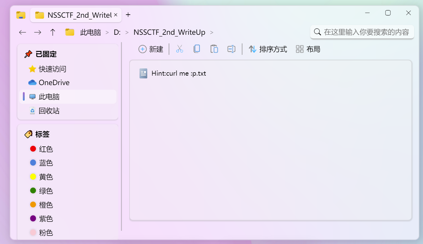 NSSCTF_2nd_WriteUp文件夹里里发现一个hint。在桌面的获取FLAG中得到另一个有用的信息。