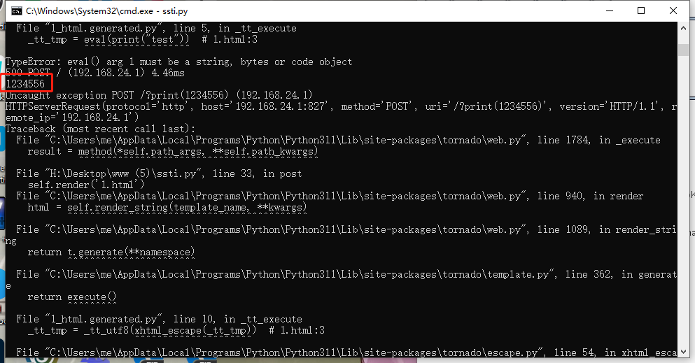 {{`、`}}、(、)、单双引号,极其麻烦。先学习一波,学习的时候在本地调试,可以发现在无过滤的情况下,该ssti是可以直接执行