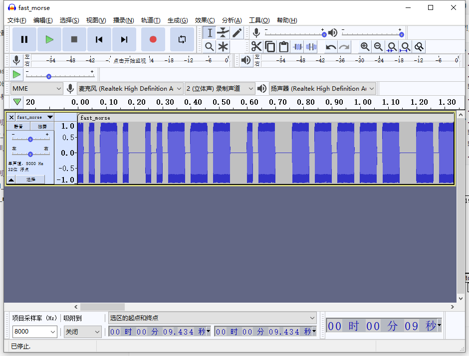 用Audacity打开附件,发现类似morse的东西。