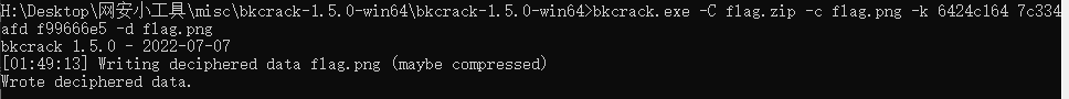 bkcrack.exe -C flag.zip -c flag.png -k 6424c164 7c334afd f99666e5 -d flag.png