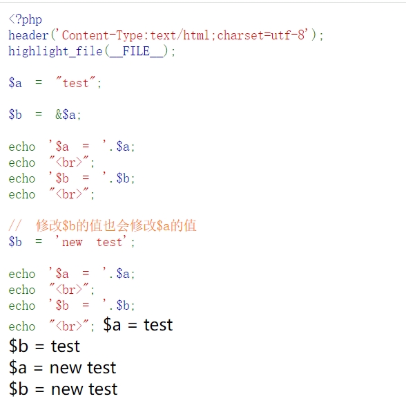 在php里,我们可使用引用的方式让两个变量同时指向同一个内存地址,这样对其中一个变量操作时,另一个变量的值也会随之改变。