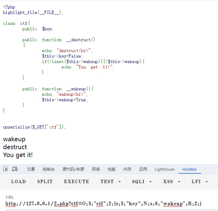 若将$this->wakeup和$this->key引用关联起来,那么在__destruct里对$this->key修改时也会把$this->wakeup一起修改了,从而达成if语句的条件。